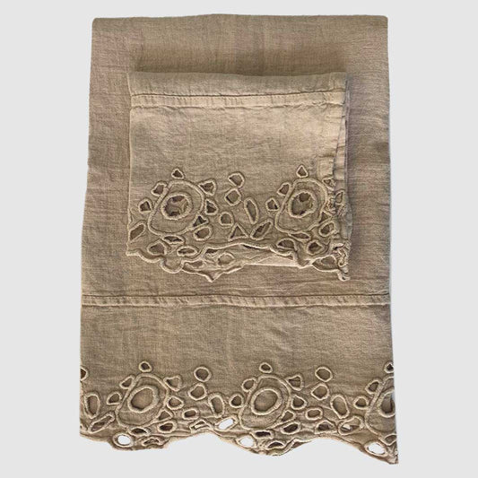 Sold outSet bagno in lino ricamo Gardenia