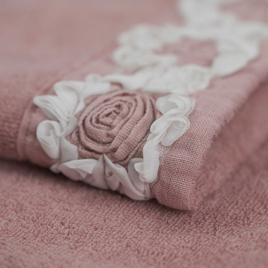 Face and guest towel set in terrycloth with Peonies embroidery