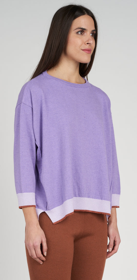 Maglia giro bicolor lurex bordo e polsi