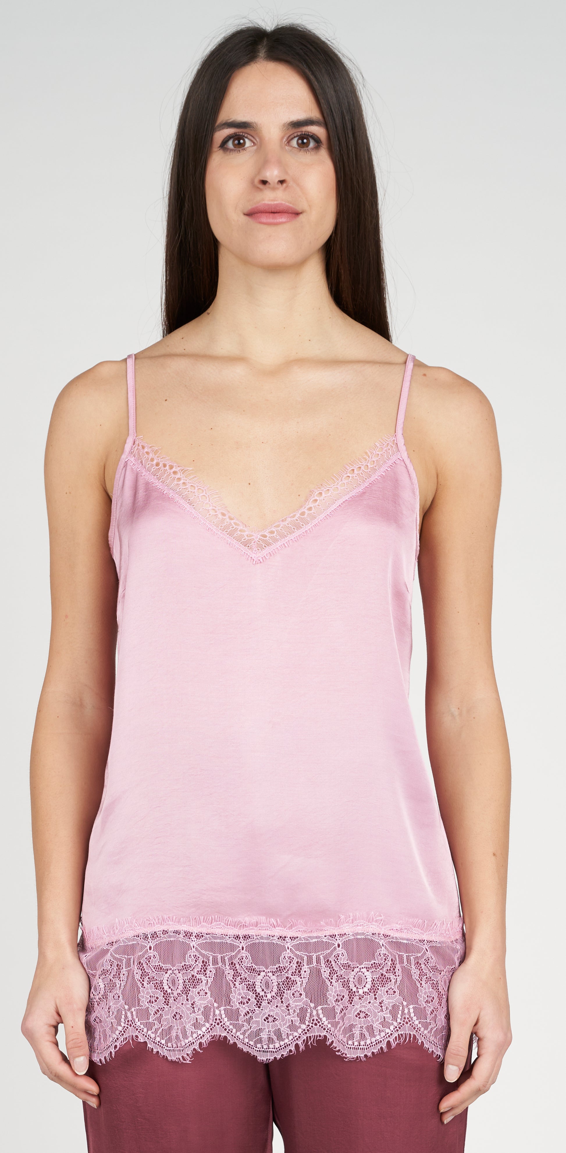 Top spalline in raso con pizzo
