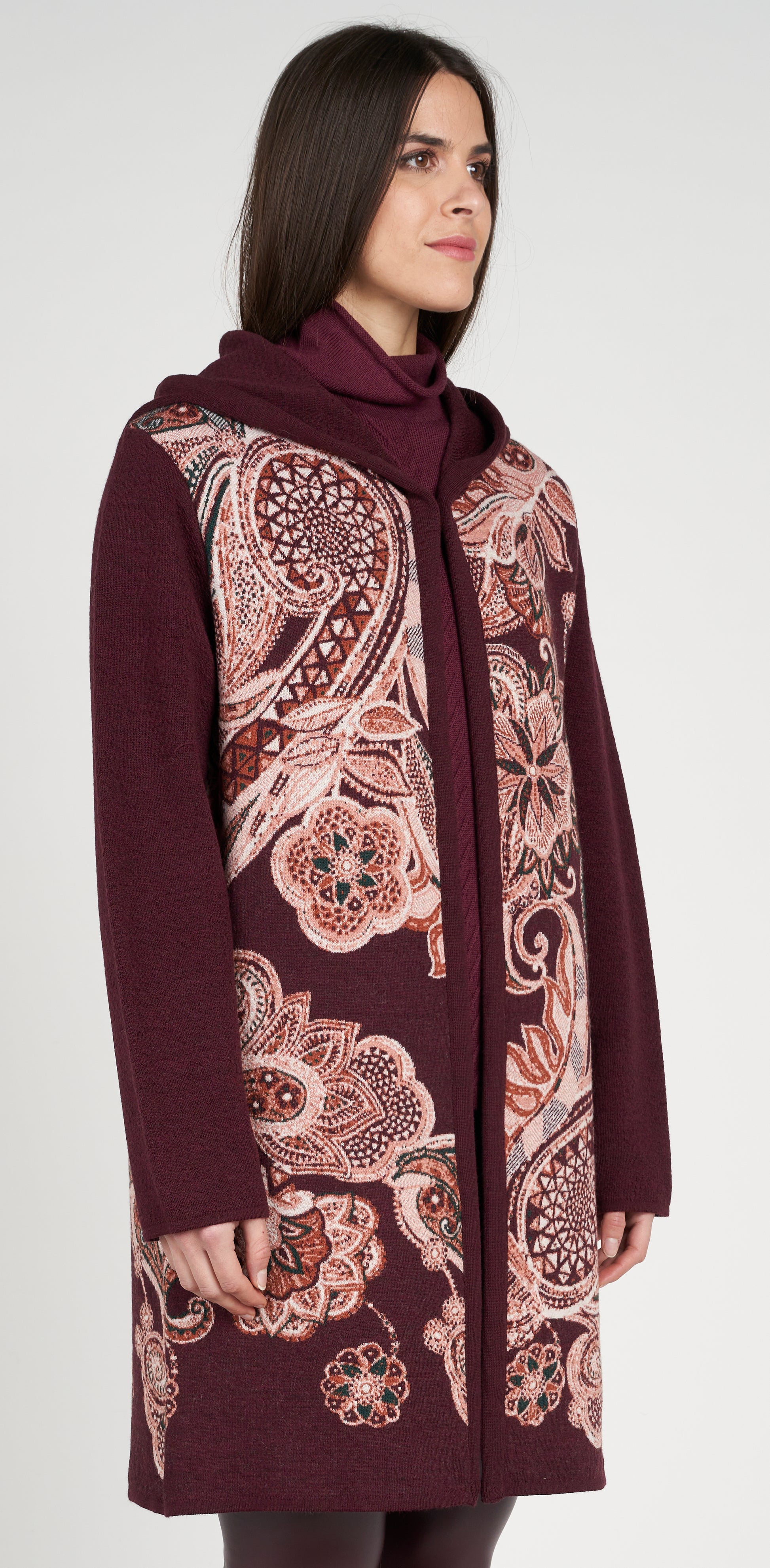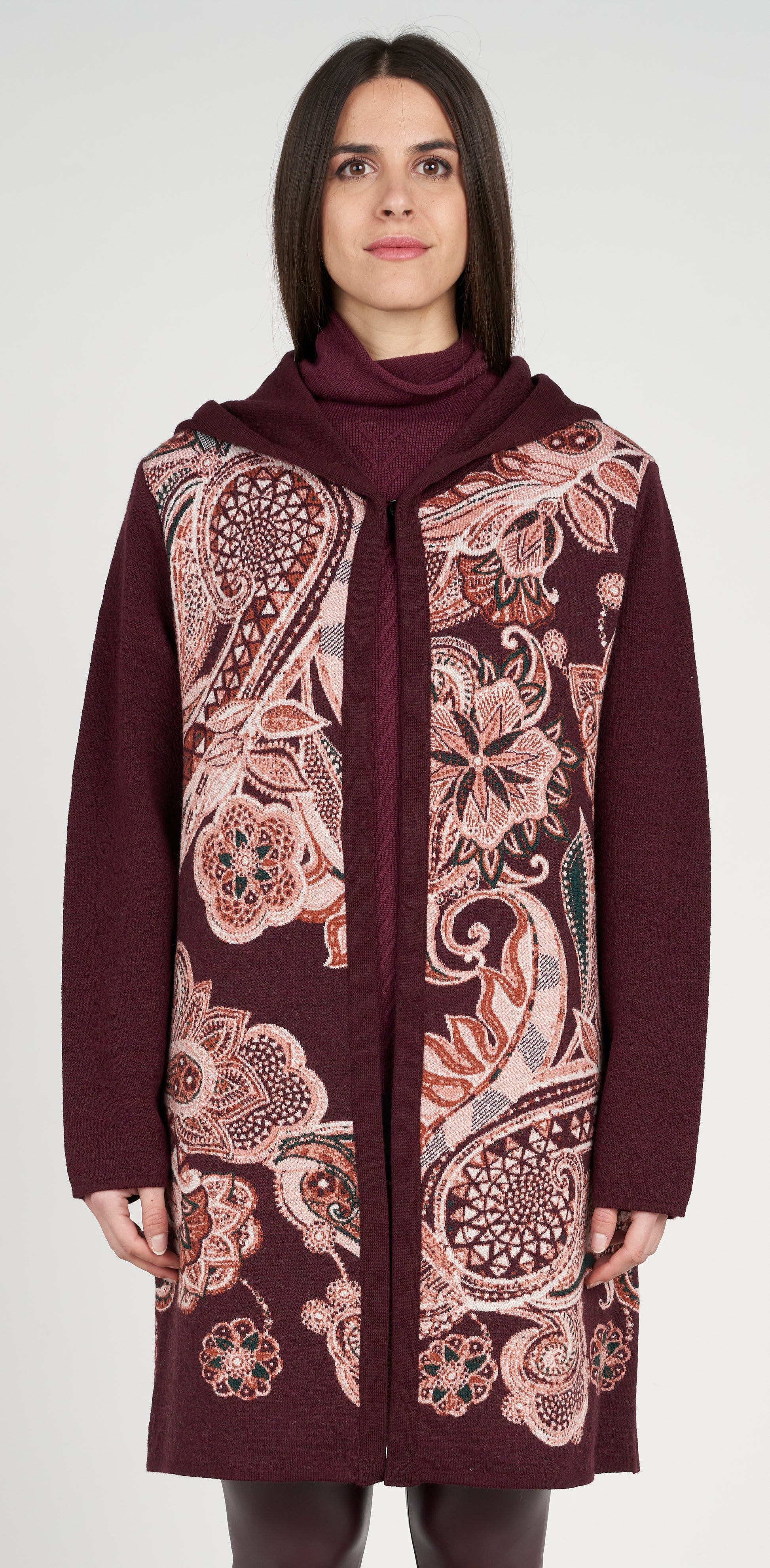 Cappotto jacquard con cappuccio