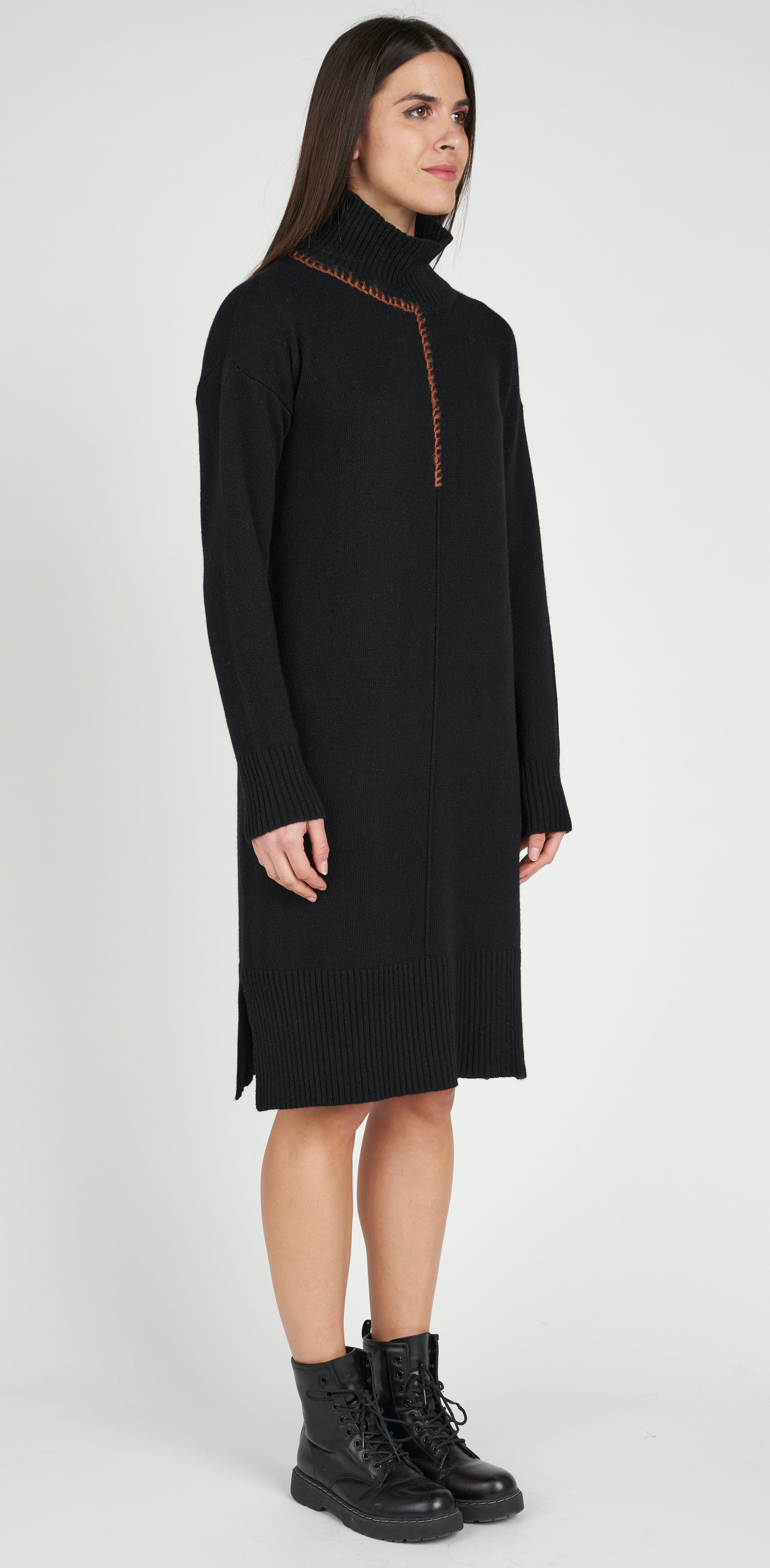 Abito lungo ricamo contrasto